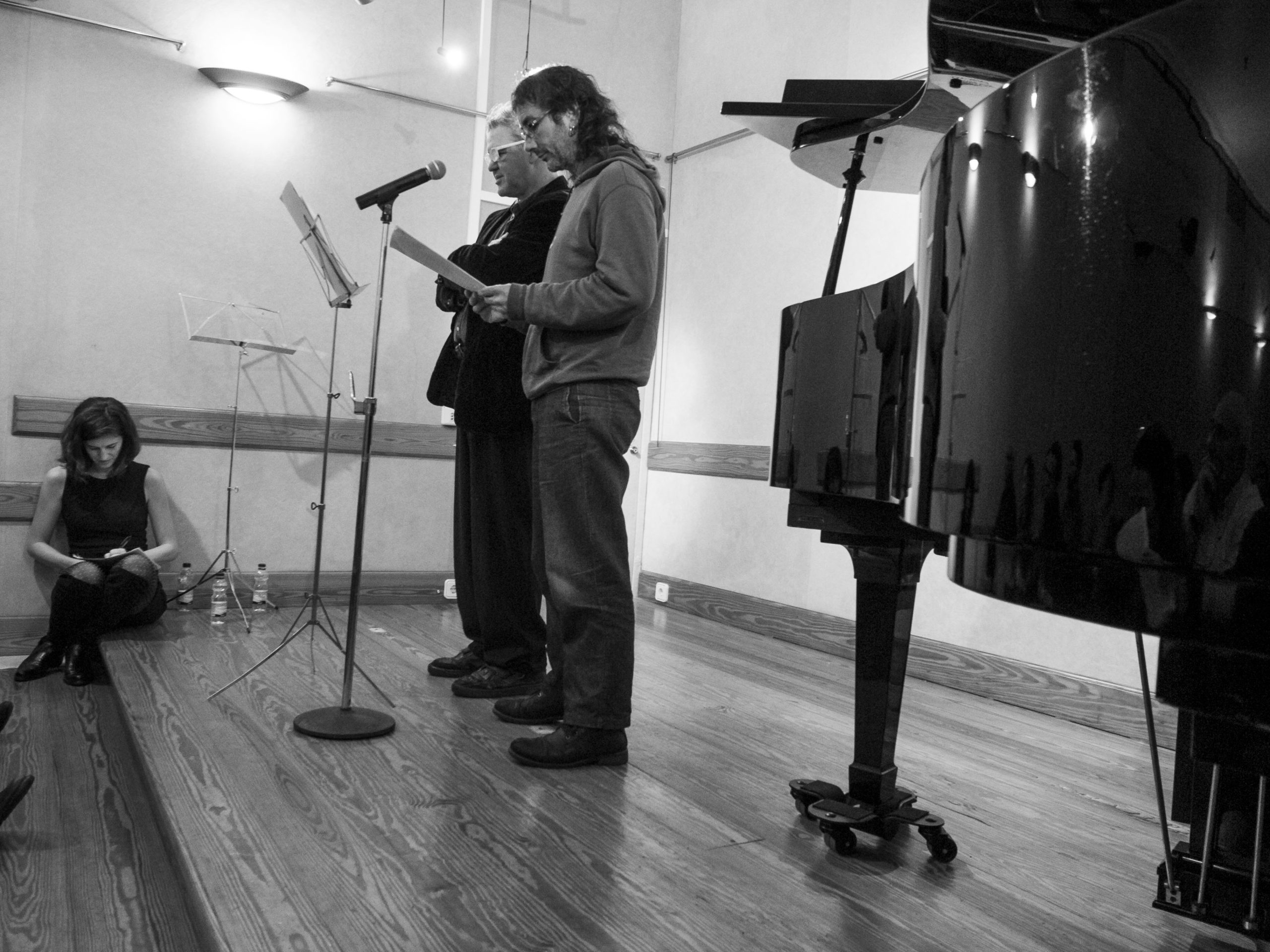 En orden de aparición: Carme Cloquells y Ana Haro, dando la bienvenida y la pianista Gemma Lloret. Los valientes escritores/lectores: José Luis Antón-Pacheco, Pepe Tadeo, María Guzmán, Dani Pascual, Marta Cardona, Bea Montes, Valentina Hidalgo, Melo, Ana Sanz, José Luis Orfila y Melo, Alejandro Etchemendi (tras la cámara), Sam García, Joana M. Garau y Lucia Palliser. ¡Gracias a todos!